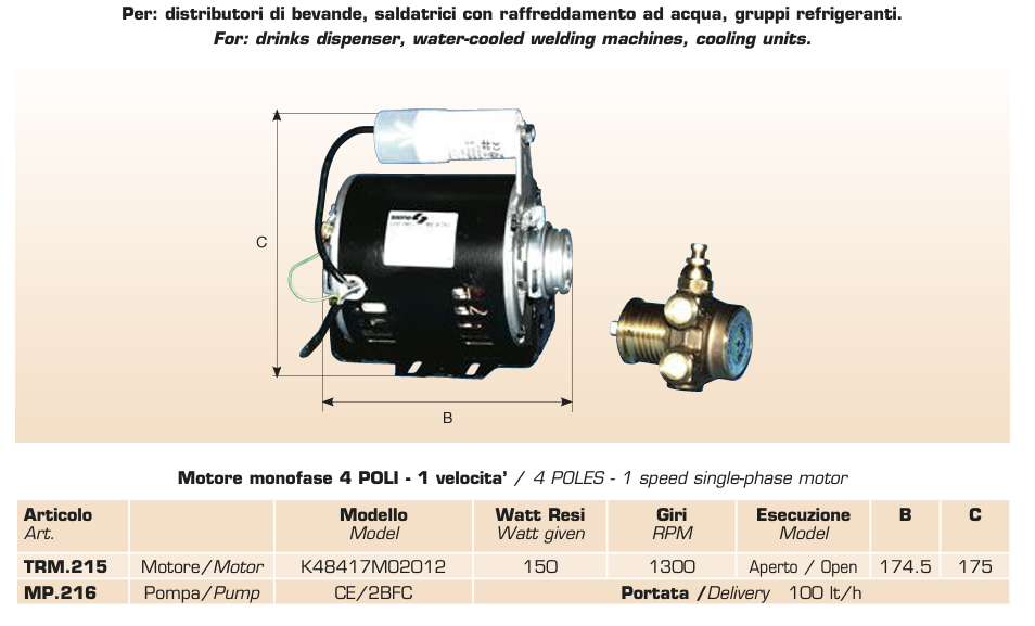 Motore di ricambio per pompa relativa ai distributori bevande , raffreddamento saldatrici, impianti di refrigerazione